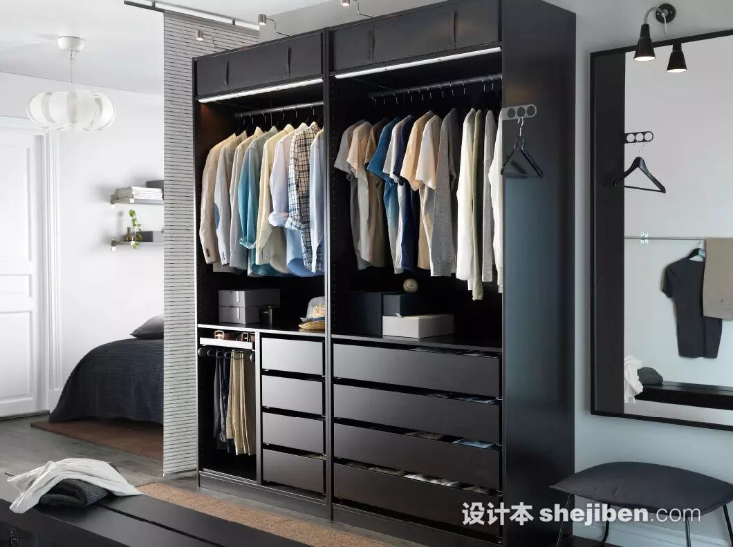 开放式衣柜适合于希望在一个空间内解决所有功能的人群,方便的存放自己衣物及其他生活用品。