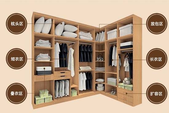 不完全封闭,一般只利用一面空墙来存放衣物,防尘是此类衣帽间的重点注意事项。可采用防尘罩悬挂衣服,用盒子来叠放衣物。为便于区别,可增加一些标志。